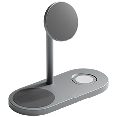 MagSafe-Schnellladen für iPhone, Apple Watch und AirPods – plus ein zweites Smartphone. Wo Technik auf Design trifft – für einen aufgeräumten Schreibtisch.