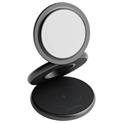 Circular aluminum alloy design, supporting MagSafe fast charging for iPhone, Apple Watch, and AirPods. Triple-fold structure saves storage space and enhances travel portability.